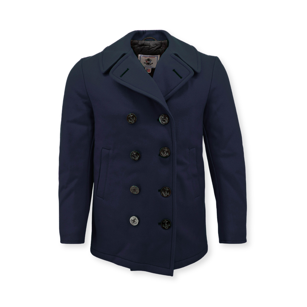 Constructed with a 100% wool outer shell, The Mariner delivers natural warmth, wind resistance, and durability. Inside, a full poly-cotton lining provides smooth comfort, breathability, and easy layering throughout the colder months. The timeless double-breasted silhouette and anchor-embossed buttons reflect its U.S. Navy-inspired heritage.